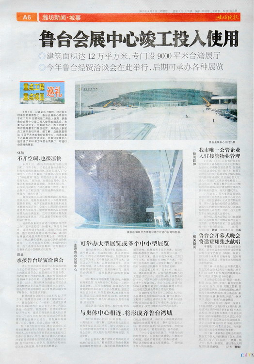 《魯臺(tái)會(huì)展中心竣工投入使用》——濰坊晚報(bào)2012年8月2日A6版