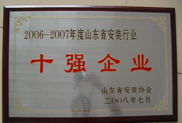 集團公司榮獲“2006-2007年度山東省安裝行業(yè)十強企業(yè)”稱號