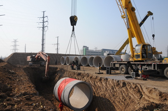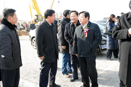 上午10時(shí)58分,在濰坊市政府副市長(zhǎng)劉偉的主持下,開工儀式正式開始,濰坊市市政局局長(zhǎng)孫萬(wàn)奎匯報(bào)工程情況。最后,當(dāng)濰坊市委副書記、市長(zhǎng)許立全宣布工程開工的霎時(shí),鞭炮齊響,彩煙映天,4臺(tái)吊車將直徑2.4米的水泥管緩緩吊起,展開施工作業(yè)。伴著禮炮噴薄的彩帶,喧天的鑼鼓,震天雷的沖天,和著施工機(jī)械的轟鳴聲,把整個(gè)開工儀式推向了高潮。隨后,市領(lǐng)導(dǎo)們興致勃勃地來(lái)到西側(cè)施工現(xiàn)場(chǎng),觀看了第三分公司的施工作業(yè)。
