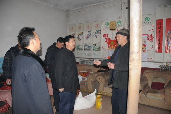 1月18日上午,集團(tuán)公司監(jiān)事會(huì)主席、黨委副書記、紀(jì)委書記滕忠斌,副總經(jīng)理兼駐臨朐幫扶領(lǐng)導(dǎo)小組組長穆乃杰,在臨朐城關(guān)街辦有關(guān)領(lǐng)導(dǎo)及殷家河村兩委領(lǐng)導(dǎo)陪同下,走訪慰問幫扶村的革命家庭、長壽家庭、孤寡家庭及困難家庭等十個(gè)家庭戶代表,并送去面粉和食用油,表達(dá)集團(tuán)公司對(duì)幫扶村村民的新春祝福和美好祝愿。集團(tuán)公司總部有關(guān)部門、第九分公司有關(guān)人員和幫扶領(lǐng)導(dǎo)小組成員參加了走訪慰問活動(dòng)。 ![]() 走訪孤寡老人 ![]() 走訪革命家屬家庭 ![]() 走訪96歲壽星戶