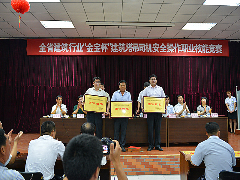 2014年6月19日,由山東省建設工會、山東省建筑安全監(jiān)督站、濰坊市建設局主辦,濰坊市質(zhì)量安全監(jiān)督站、金寶職業(yè)培訓學校協(xié)辦的“山東省建筑行業(yè)‘金寶杯’建筑塔吊司機安全操作職業(yè)技能競賽在濰坊金寶職業(yè)培訓學校圓滿落幕。集團組隊代表濰坊市參加比賽,獲得團體銀獎,操機手王來春榮獲個人金獎。
