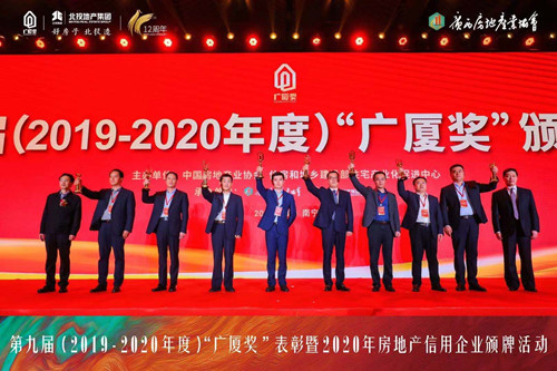2021年4月8日,由中國房地產(chǎn)業(yè)協(xié)會、住房和城鄉(xiāng)建設(shè)部住宅產(chǎn)業(yè)化促進中心共同主辦的第九屆(2019-2020年度)“廣廈獎”表彰暨2020年房地產(chǎn)信用企業(yè)頒牌活動在廣西南寧隆重舉行。由集團匠心筑造的泰和上筑北區(qū)項目獲得的“廣廈獎”獎杯由此領(lǐng)回。這是集團又一次榮獲房地產(chǎn)業(yè)的最高獎“廣廈獎”。廣廈獎,有著“房地產(chǎn)界奧斯卡獎”的美譽。作為國家房地產(chǎn)行業(yè)最權(quán)威的綜合性獎項,每兩年評選一次,與建筑領(lǐng)域“魯班獎”、設(shè)計領(lǐng)域“梁思成獎”齊名,代表著中國房地產(chǎn)綜合開發(fā)水平的最高榮譽。據(jù)悉,獲獎項目必須是規(guī)劃設(shè)計水平高、環(huán)境好、質(zhì)量優(yōu)、性能好,在推進建筑工業(yè)化、綠色低碳和解決群眾住房問題方面能起示范、帶動作用,其申報和評定有著嚴格的程序和標準。