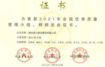由集團(tuán)機(jī)施公司匠心QC小組編寫(xiě)的成果《施工升降機(jī)新型電纜臂架的研制》,經(jīng)初賽、復(fù)賽和決賽,在榮獲特等獎(jiǎng)后被推薦至中國(guó)質(zhì)量協(xié)會(huì)代表建筑行業(yè)作進(jìn)一步的競(jìng)賽交流,該匠心QC小組也被中國(guó)質(zhì)量協(xié)會(huì)、中華全國(guó)總工會(huì)、中華全國(guó)婦女聯(lián)合會(huì)評(píng)選為2021年全國(guó)優(yōu)秀質(zhì)量管理小組,代表了建筑行業(yè)質(zhì)量管理小組活動(dòng)的最高水平。