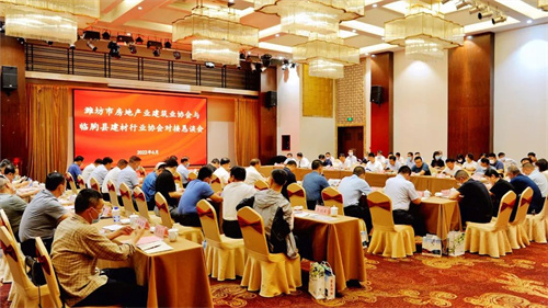 2022年6月11日,濰坊市房地產(chǎn)業(yè)協(xié)會、濰坊市建筑業(yè)協(xié)會與臨朐縣建材行業(yè)協(xié)會對接懇談會在臨朐縣攬翠湖酒店舉行。濰坊市建筑業(yè)發(fā)展服務中心副主任丁士剛,濰坊市房地產(chǎn)業(yè)協(xié)會會長、集團董事長徐鵬強,濰坊市建筑業(yè)協(xié)會會長、集團總工程師房海,臨朐縣委副書記、縣長陳誠,縣委常委、辦公室主任王磊,副縣長董樹華,市房協(xié)副會長單位和市建協(xié)副會長單位20余位負責人,臨朐縣相關部門負責人出席對接懇談會。
