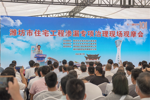 2022年7月1日上午,由濰坊市住建局組織的“濰坊市住宅工程滲漏專項治理”觀摩會在集團(tuán)二建公司總承包施工的海通恒信·鳶都名筑項目現(xiàn)場舉行。