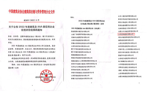 近日,中國(guó)建筑業(yè)協(xié)會(huì)建筑供應(yīng)鏈與勞務(wù)管理分會(huì)公布了2022年度建筑業(yè)誠(chéng)信勞務(wù)企業(yè)評(píng)價(jià)結(jié)果,山東昌鴻建設(shè)有限公司被評(píng)為建筑業(yè)AAA級(jí)信用企業(yè)(分包商/供應(yīng)商/服務(wù)商)。自2019年至今已連續(xù)四年獲得全國(guó)3A級(jí)建筑誠(chéng)信勞務(wù)企業(yè)殊榮。