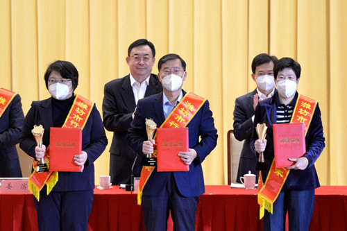 徐鵬強(qiáng)董事長出席全市工作動員大會并領(lǐng)受行業(yè)領(lǐng)軍企業(yè)家榮譽稱號獎杯證書