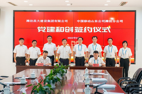 2023年9月13日下午,濰坊昌大建設(shè)集團與中國移動山東公司濰坊分公司“黨建和創(chuàng)”戰(zhàn)略合作協(xié)議簽約儀式在濰坊移動總部辦公樓舉行。集團公司黨委書記、董事長徐鵬強,濰坊移動黨委書記、總經(jīng)理李亞平出席簽約儀式。集團公司紀委書記穆乃杰與濰坊移動黨委委員、工會主席、副總經(jīng)理李廣代表雙方在協(xié)議書上簽字。