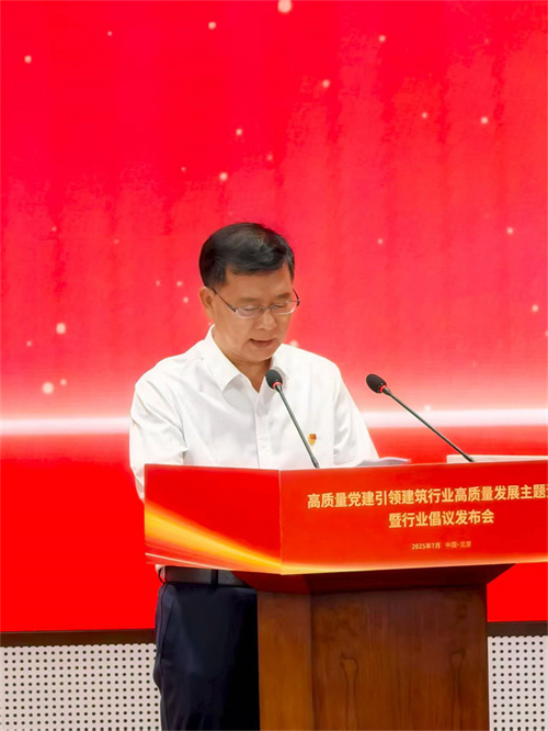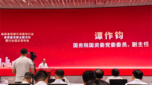 2025年7月7日下午,全國高質(zhì)量黨建引領(lǐng)建筑行業(yè)高質(zhì)量發(fā)展主題活動暨行業(yè)倡議書發(fā)布會在北京中建財富國際中心召開,國務(wù)院國資委黨委委員、副主任譚作鈞,全國工商聯(lián)黨組成員、副主席汪鴻雁出席會議并發(fā)表重要講話。集團(tuán)黨委書記、董事長徐鵬強出席會議并作表態(tài)發(fā)言。